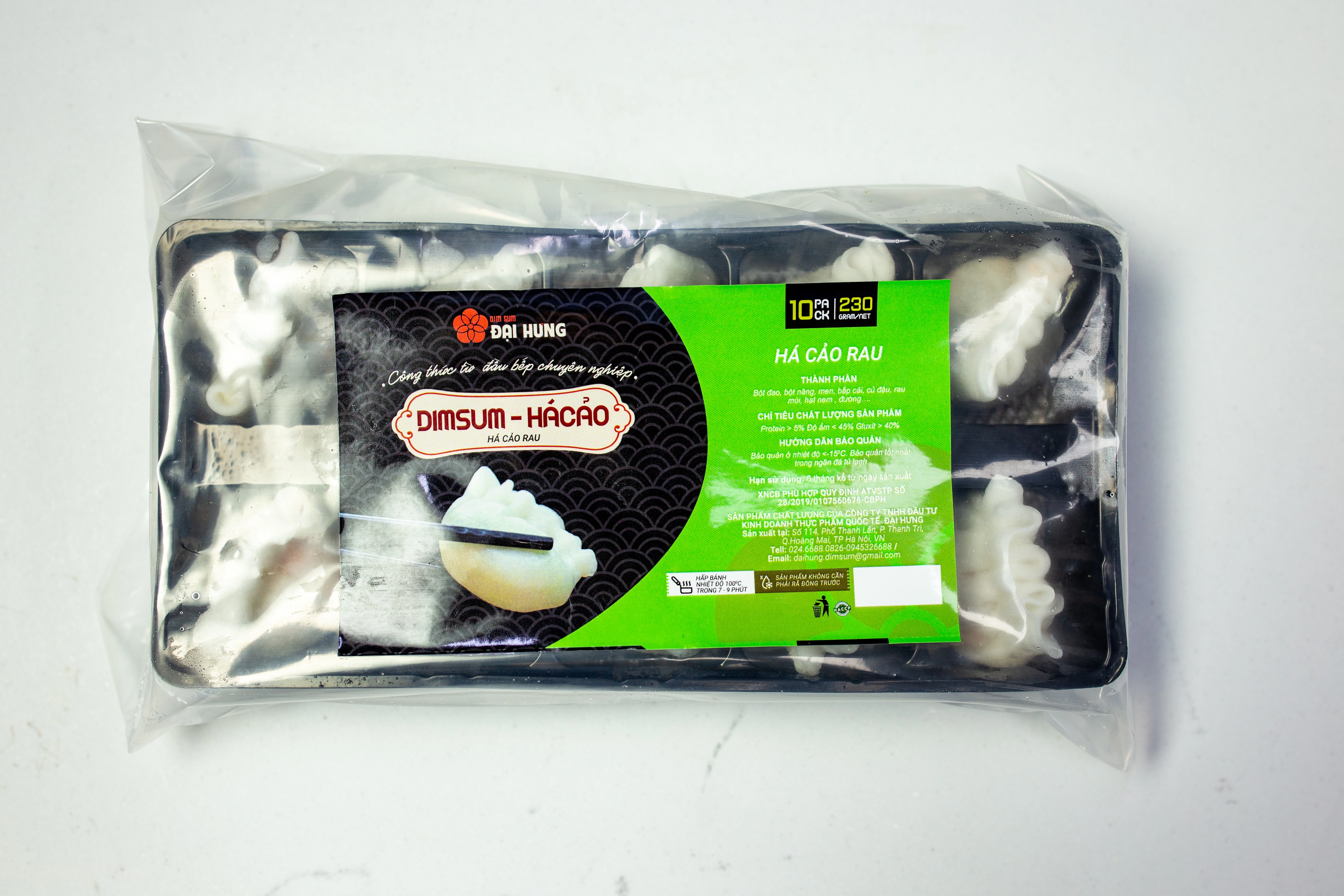 Há cảo rau thương hiệu Đại Hưng luôn thu hút khách hàng bởi vị ngon thanh đạm. Sản phẩm được trang trí đẹp mắt, ấn tượng. lớp bột há cảo bên ngoài mỏng, mềm dẻo. Lớp nhân rau củ bên trong ngon, ngọt mát vì nguyên liệu đều được cân đối.